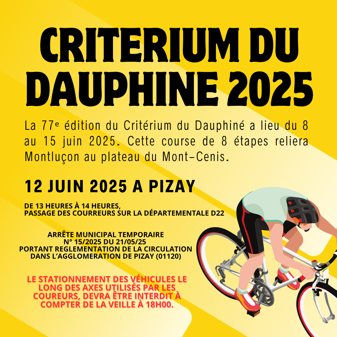 Les chaussées suivantes seront barrées au passage de la course du Critérium du Dauphiné :