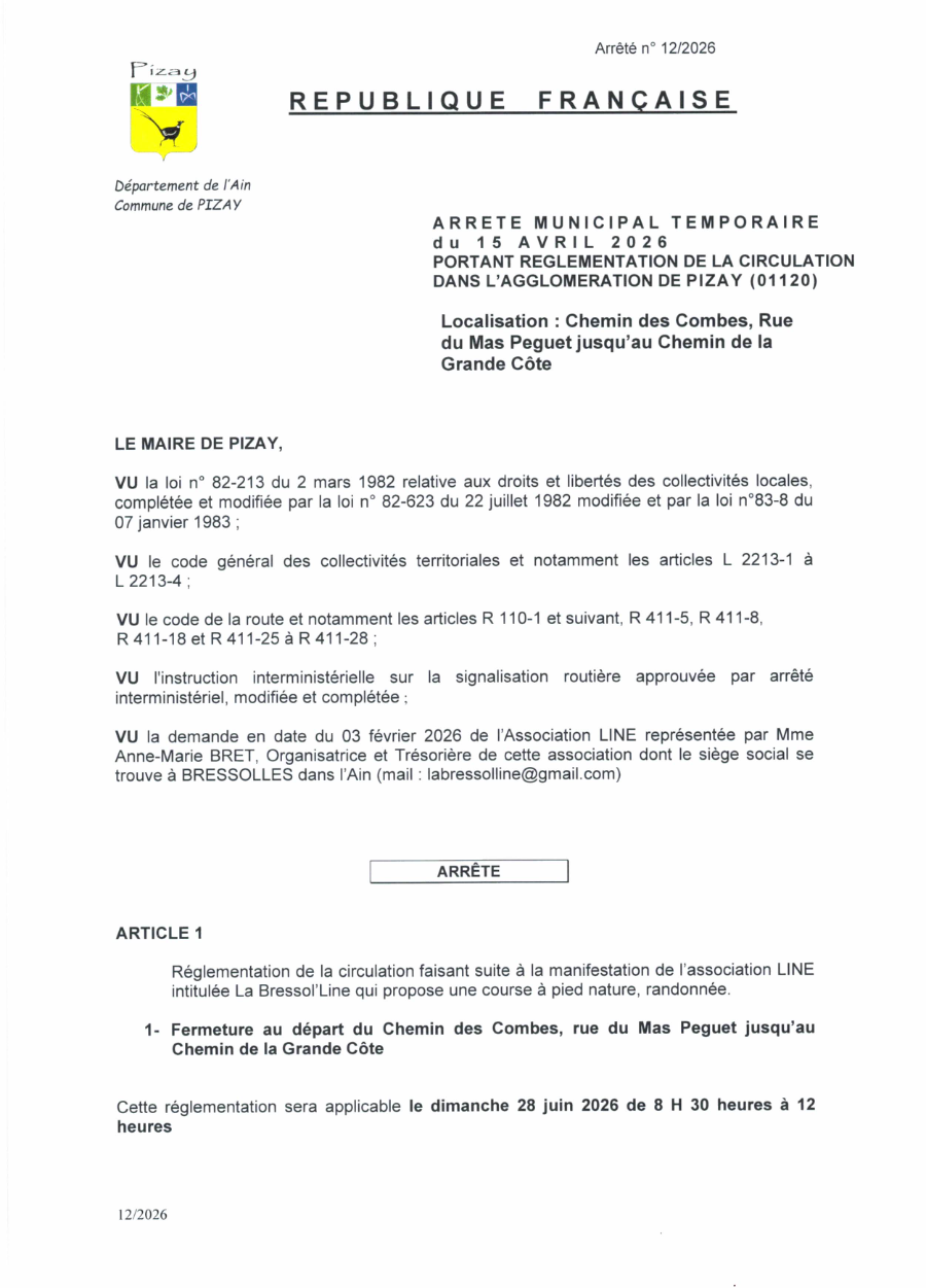 Arrété circulation 12-2026 - 28 juin 2026